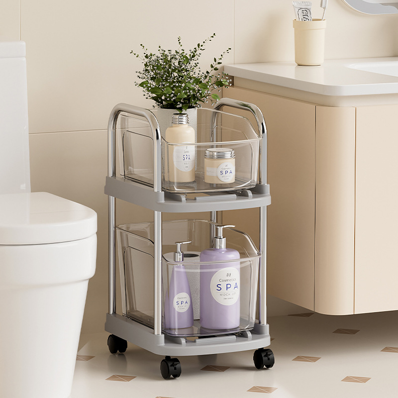 Rak penyimpanan lantai multi lapisan, rak troli dapur akrilik, rak penyimpanan makanan ringan dan mobile, rak penyimpanan kamar mandi