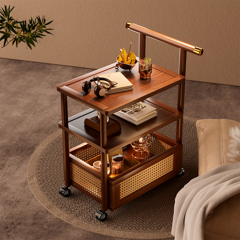 Troli Kecil Pertengahan Rak Makanan Ringan Retro Meja Kopi Bisa Dipindahkan