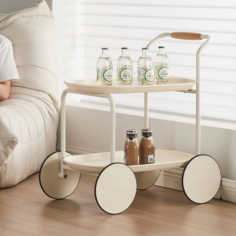 Rak Troli Kecil Kaca Mewah Ringan Meja Kecil Meja Kopi Krim Ruang Tamu Beroda Sofa Modern Sederhana dengan Roda