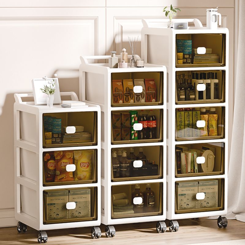 Troli Kecil dengan Genggam Model Baru Rak Penyimpanan Mainan Ruang Tamu Mobile Lantai Penyimpanan Banyak Lantai Tipe Laci Makanan Ringan Asrama