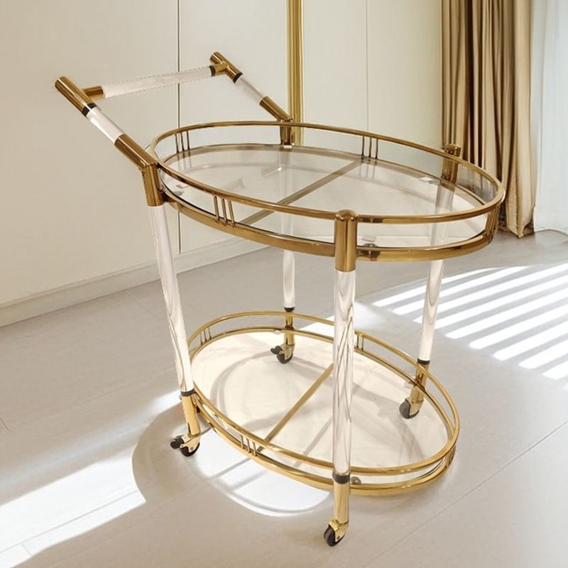 Mobil Makan Baja Tahan Karat Mewah Emas Ringan Troli Ponsel Restoran Komersial Troli Teh Troli Minuman Anggur Dua Lapis Sederhana Modern