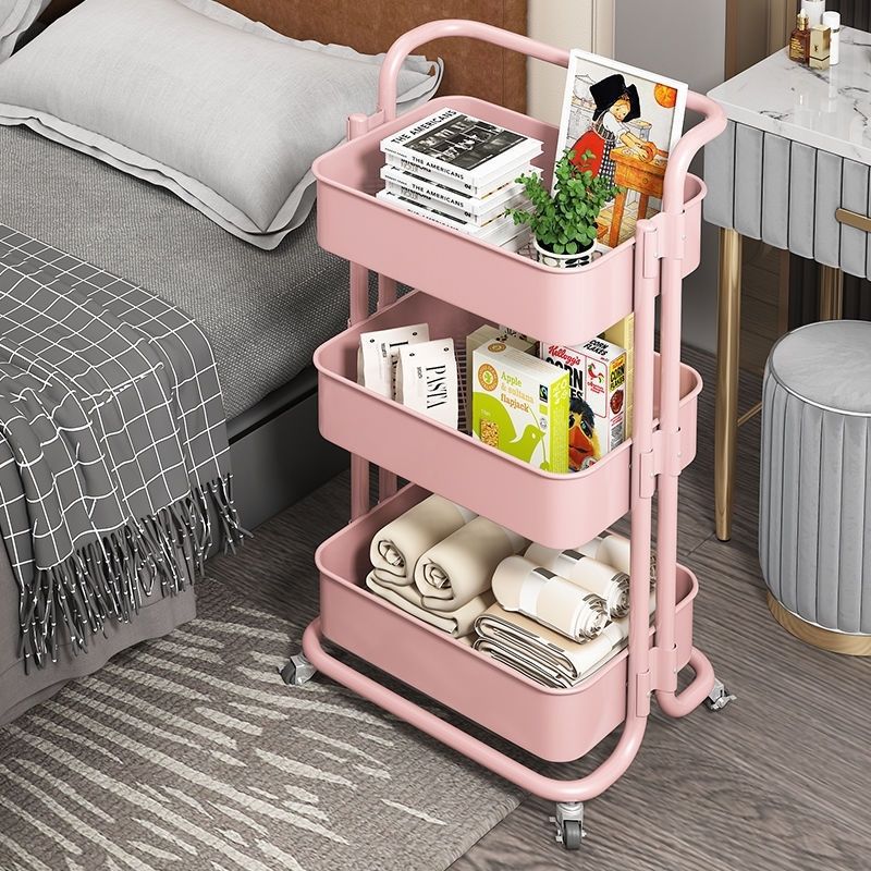 Rak Troli Kecil Ekstra Tebal Rak Penyimpanan Ruang Tamu Dapur Lantai Bertingkat Mobile Rak Penyimpanan Perlengkapan Bayi Makanan Ringan