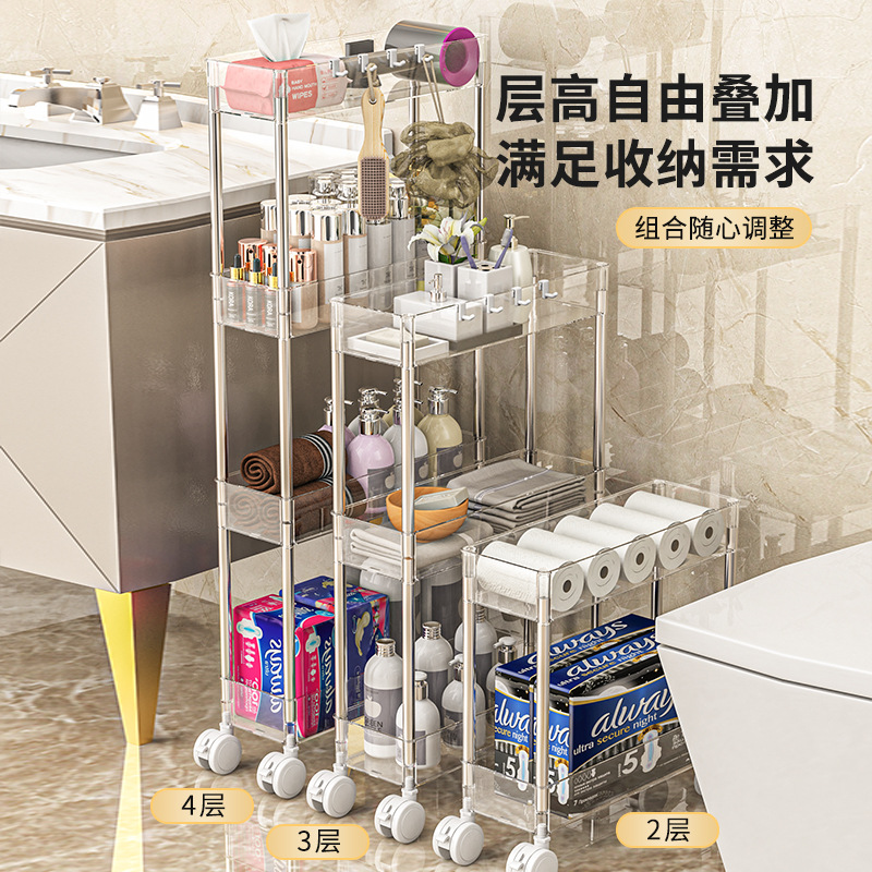 Rak penyimpanan kamar mandi, rak penyimpanan transparan troli banyak tingkat