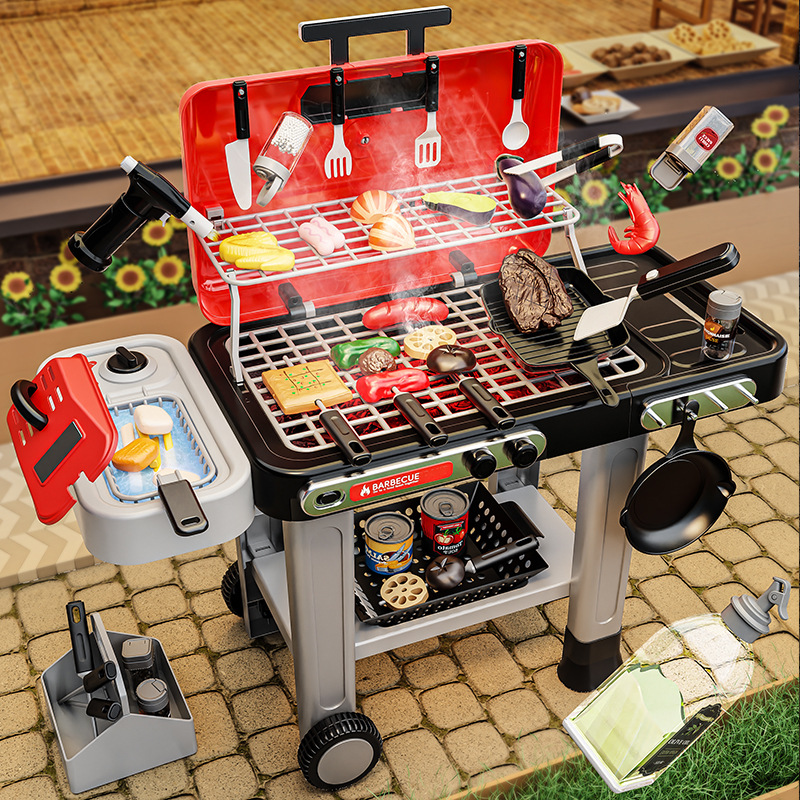 Anak-anak Multifungsi Barbecue Tungku Mainan Simulasi Simulasi Memasak Efek Suara Semprot Dapur Kecil
