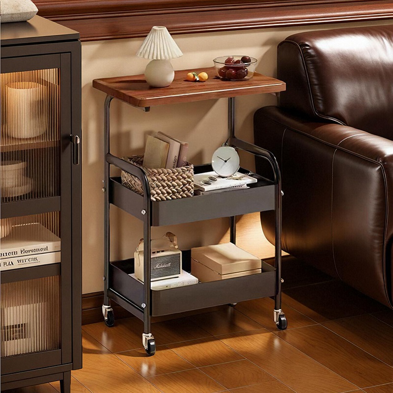 Troli Kecil Gaya Pertengahan Rak Penyimpanan Barang Makanan Ringan Meja Kecil Samping Sofa Meja Samping Meja Kopi Mobile Ruang Tamu Retro