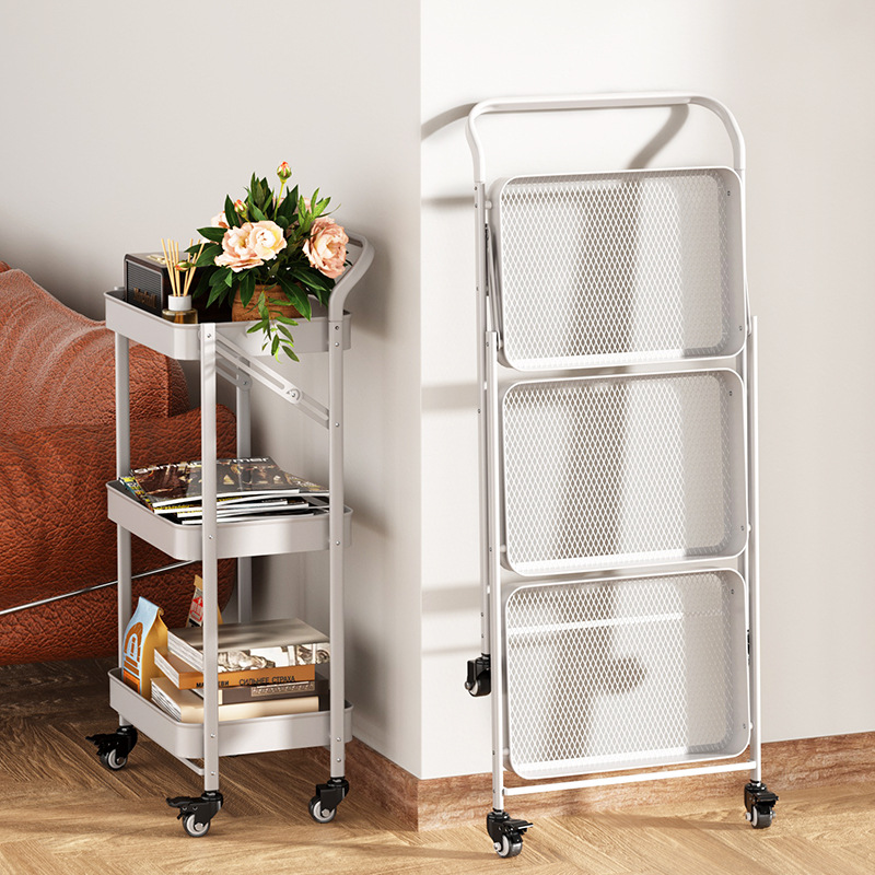 Rak Penyimpanan Penyimpanan Ruang Tamu Ruang Dapur Rak Penyimpanan Barang Troli Logam Jaring Kotak Kotak Tiga Lantai yang Bisa Bergerak
