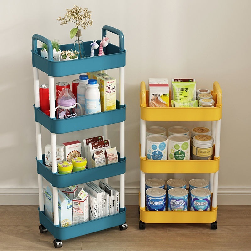 Rak Barang Troli Kecil Lemari Penyimpanan Troli Roda Universal Penyimpanan Mainan Makanan Ringan Warna Nyata Warna Transparan Bebas Pemasangan Gratis Ongkir