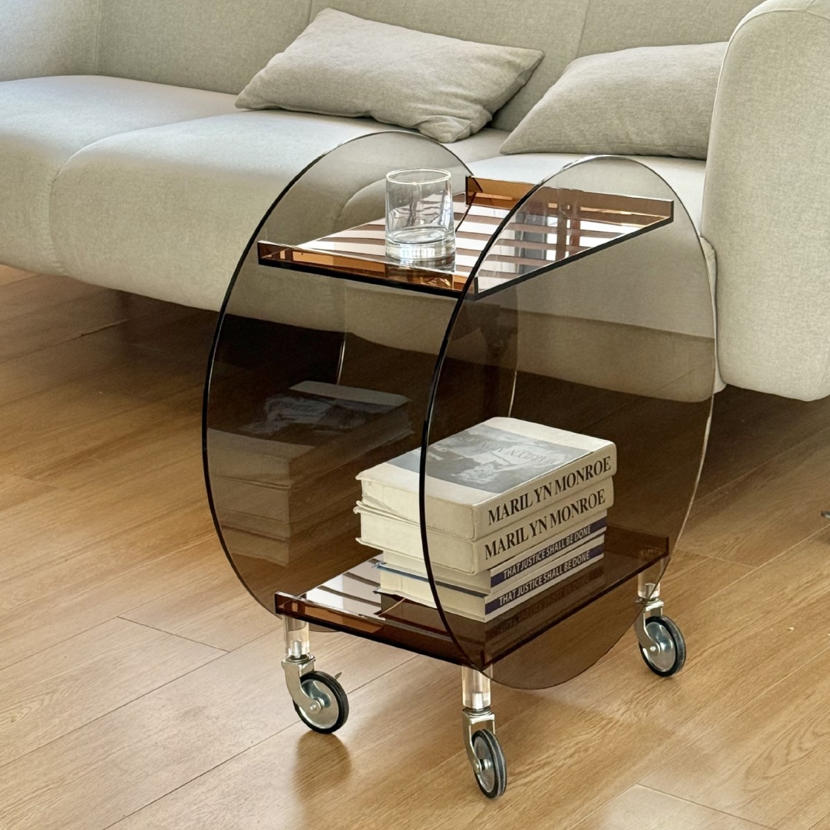 Troli Akrilik Rak Barang Ponsel di Pinggir Sofa Bisa Penyimpanan Makanan Ringan Anggur Bulat Instagram Meja Kopi Rumah Tangga