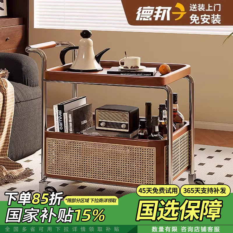Gerobak Kecil Dapat Dipindahkan Sofa Ruang Tamu Meja Kopi Rak Penyimpanan Barang Dapur Kayu Solid Gaya Kuno Model Baru Mobil Makan