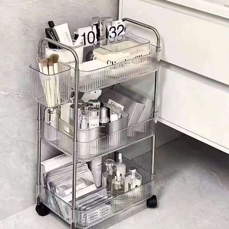 Troli Kecil Akrilik Transparan Rak Makanan Ringan Mobile Rak Kamar Tidur Tipe Lantai Mobil Penyimpanan Kosmetik