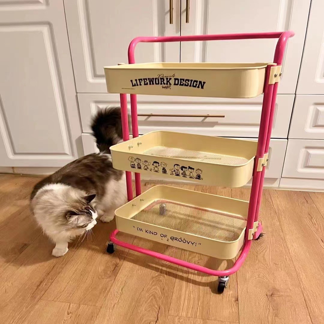 Rak Penyimpanan Jahitan Gaya Krim INS Rak Penyimpanan Barang Troli Kecil Produk Ibu dan Bayi Nilai Tinggi Rak Penyimpanan Minuman Makanan Ringan