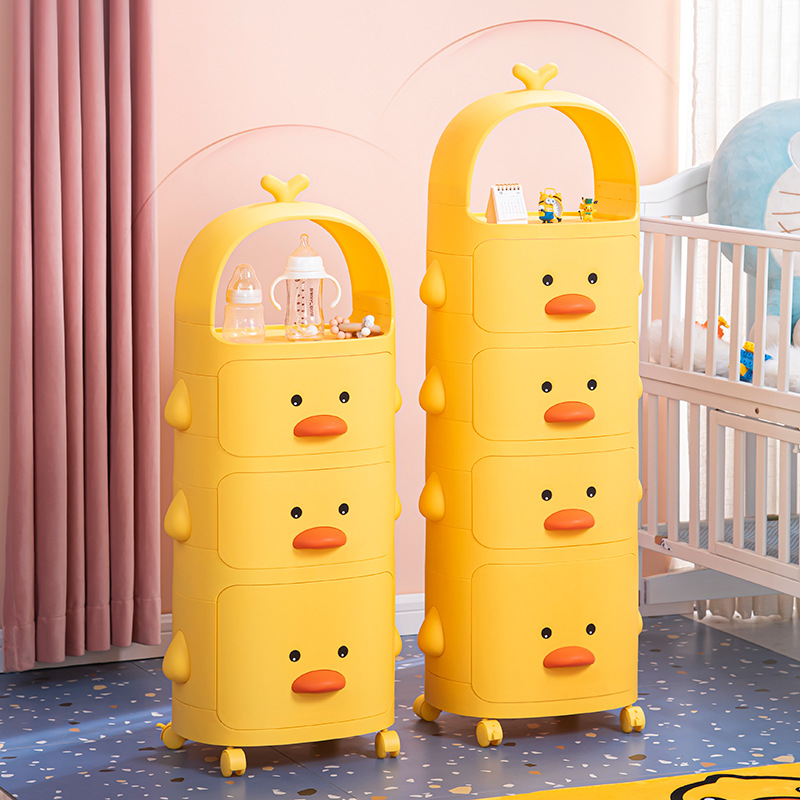 Kotak penyimpanan troli bebek kuning kecil, kotak penyimpanan laci mainan anak-anak, rak penyimpanan pengaturan makanan ringan meja samping tempat tidur