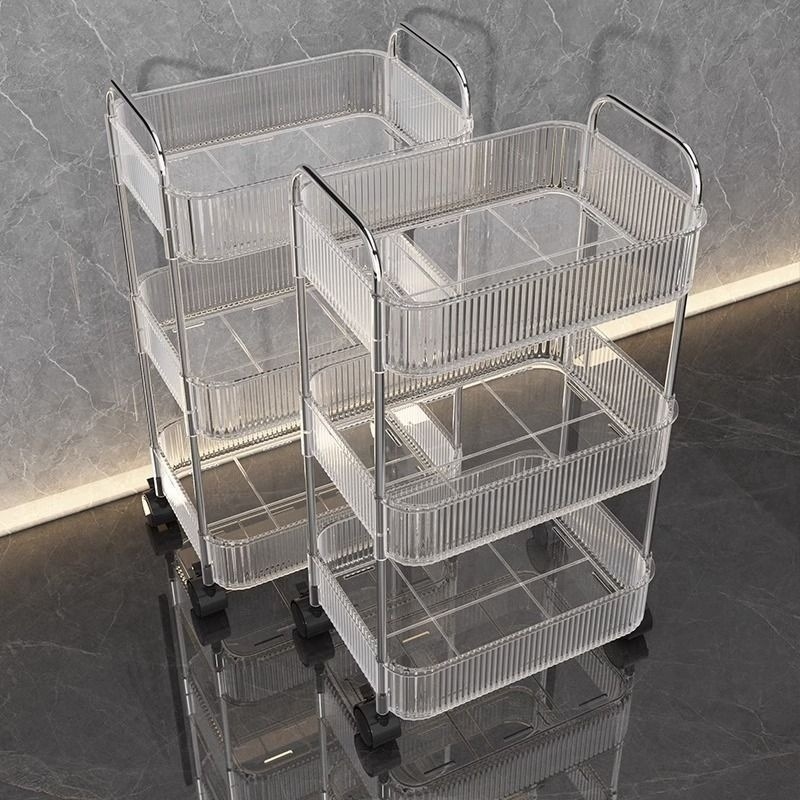 Rak Troli Kecil Transparan Rak Penyimpanan Kosmetik Ponsel Makanan Ringan Kamar Tidur