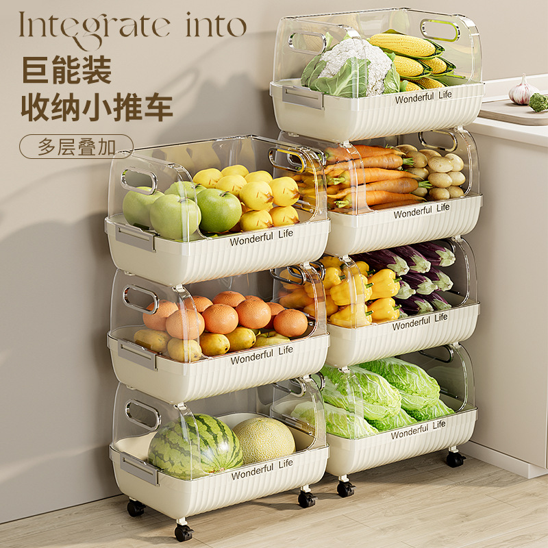 Rak penyimpanan perlengkapan anak dan ibu rumah tangga kapasitas besar rak penyimpanan transparan makanan ringan kamar tidur troli multifungsi dapat bergerak