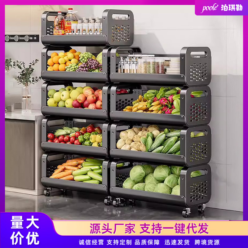 Rak Keranjang Sayuran Dapur Banyak Lantai Dapat Pindah Tempat Penyimpanan Buah dan Sayuran Troli Kecil Multifungsi Rumah Tangga