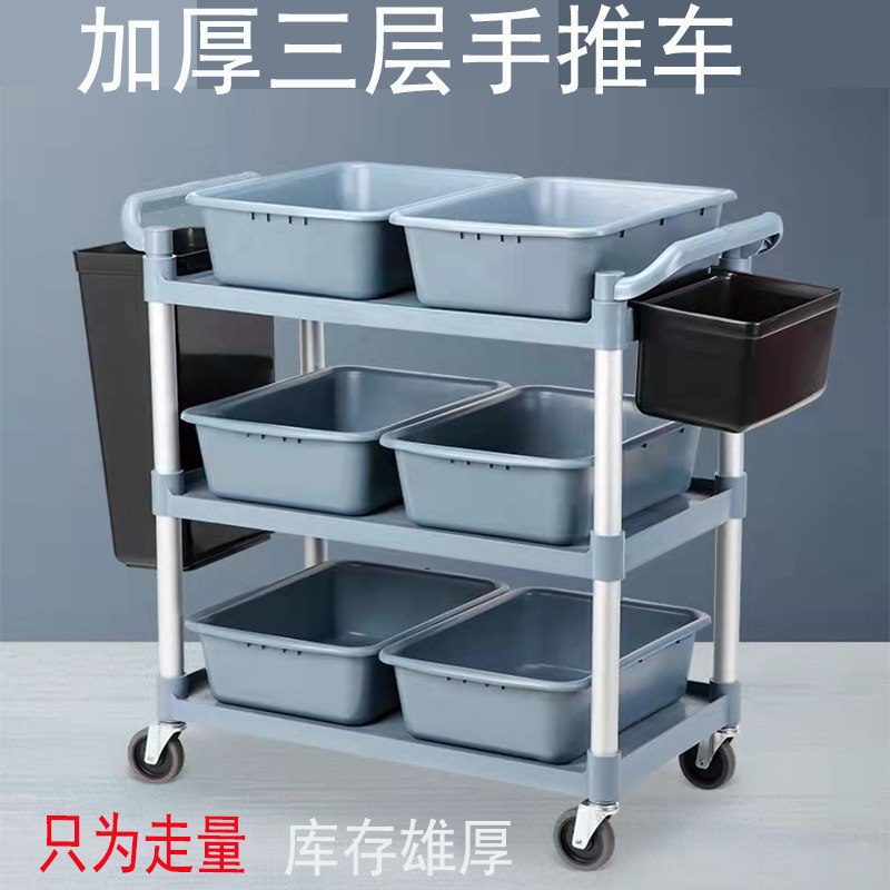 Troli plastik tiga lapis besar, troli makanan ringan, tiga lapis, troli pengiriman, tiga lapis, dengan roda, penahan beban super besar, Hotel