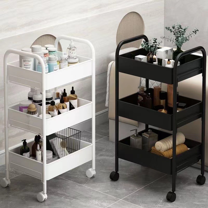 Troli Penyimpanan Makanan Ringan Baja Karbon Dapat Digerakkan Rak Penyimpanan Kecil Kamar Tidur Toilet Rak Dapur Rak Penyimpanan Mobile Multi Lapis Asrama