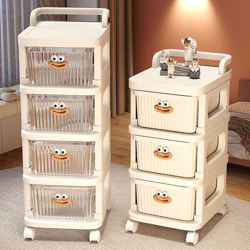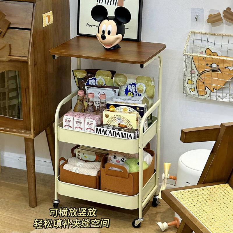 Troli Kecil Rak Makanan Ringan Perlengkapan Bayi Lemari Penyimpanan Rak Penyimpanan Mainan Bayi Dapat Bergerak di Lantai Rak Penyimpanan Gaya Krim