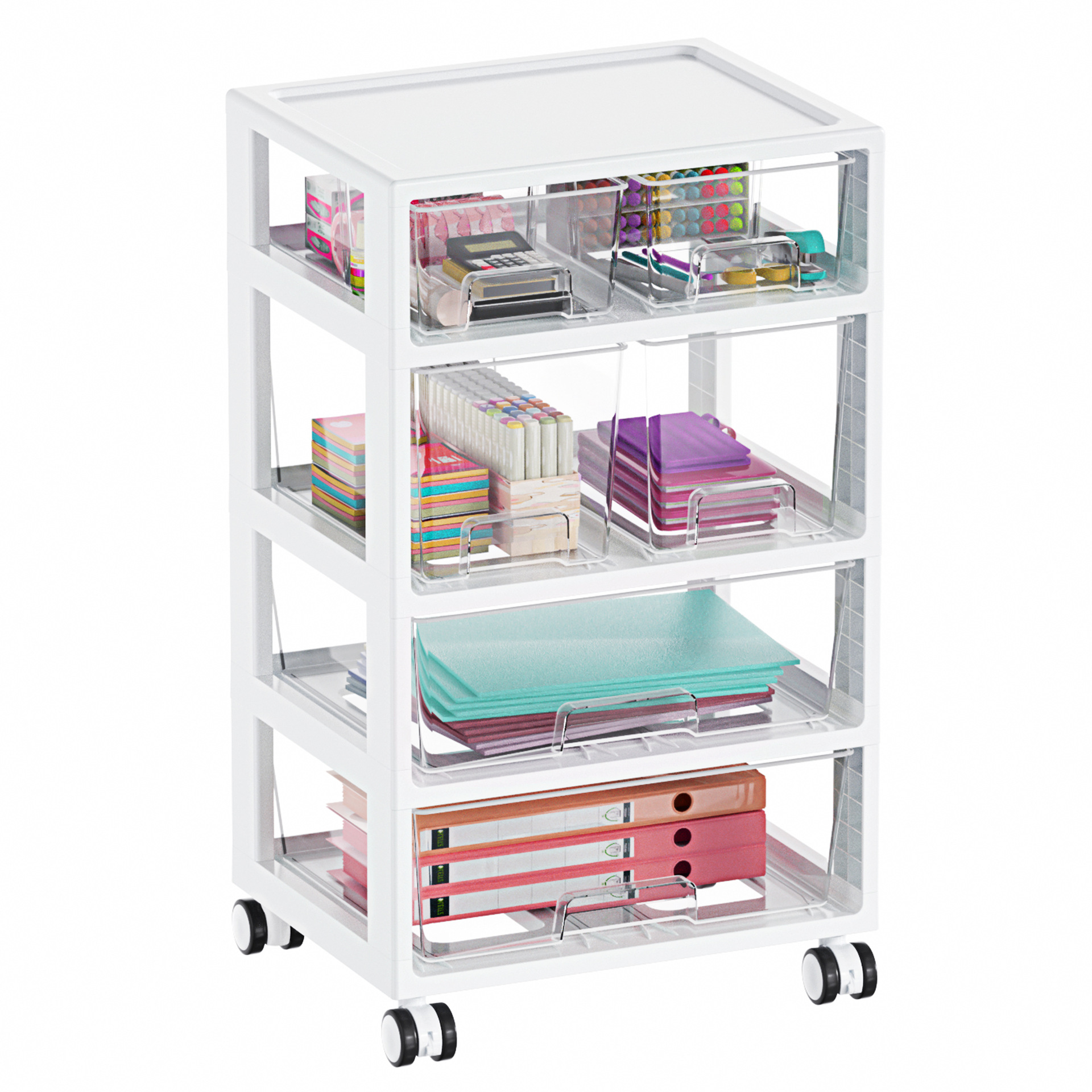 Rak penyimpanan troli, rak penyimpanan di bawah meja, rak buku, rak penyimpanan kantor di samping buku meja, rak katrol penyimpanan makanan ringan