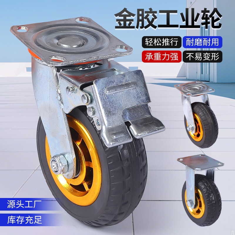 Penjualan langsung pabrik roda karet kastor karet Universal kastor rem roda industri roda karet emas bisu roda elastis tinggi