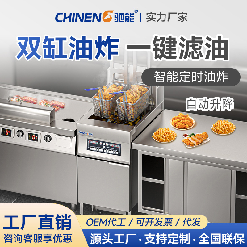 Chieneng penggoreng elektrik pengangkat otomatis, penggorengan ayam goreng kapasitas besar silinder ganda komersial