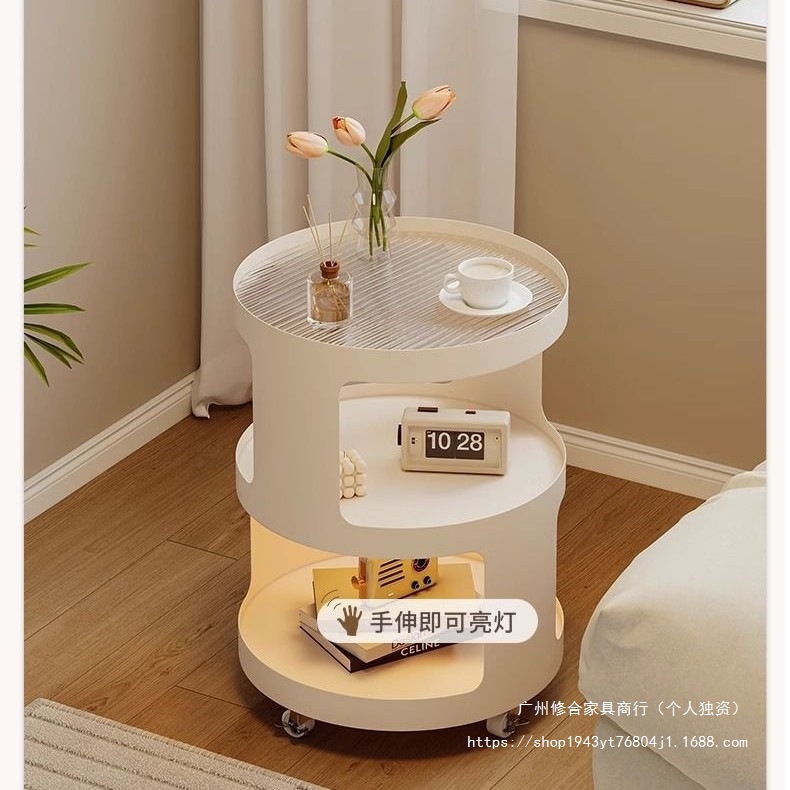Gerobak Kecil Meja Kopi Bergerak Gaya Krim Sofa Modern Ruang Tamu Sederhana Rak Tempat Tidur Kreatif Meja Kecil Rumah Tangga