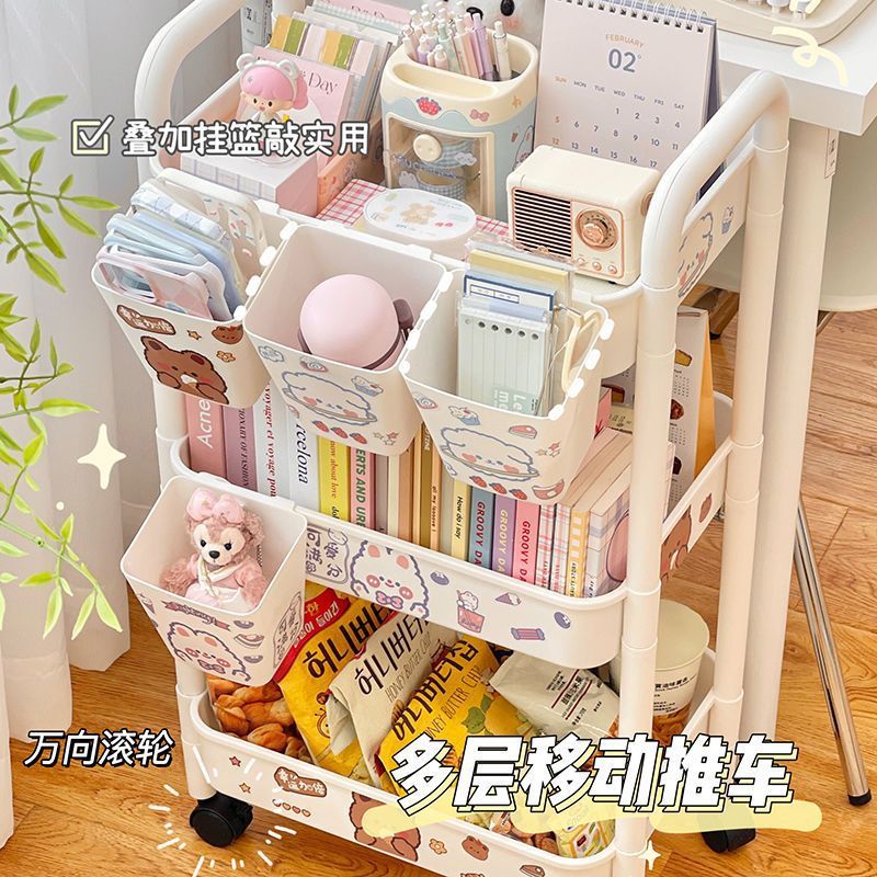 Rak Barang Troli Kecil Rak Makanan Ringan Multi Lantai Lantai Kamar Tidur Kamar Mandi Rak Penyimpanan Asrama Siswa Dapat Bergerak Dapur