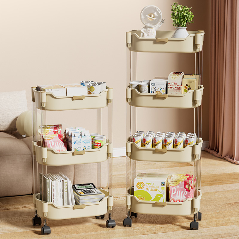 Troli Kecil Rak Makanan Ringan Perlengkapan Bayi Lemari Penyimpanan Rak Penyimpanan Mainan Bayi Dapat Bergerak di Lantai Rak Penyimpanan Gaya Krim