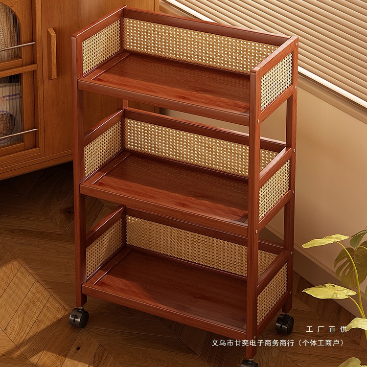 Rak Barang Troli Kecil Rak Penyimpanan Bertingkat Rak Ruang Tamu Rak Kayu Bambu Sederhana untuk Rumah Tangga