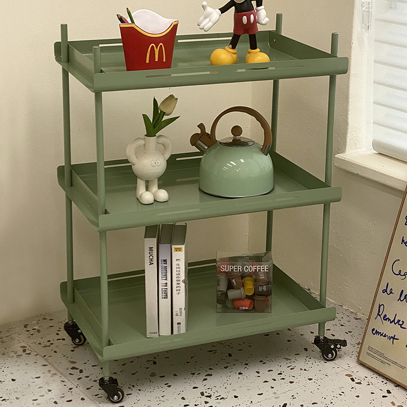 Rak Penyimpanan Bisa Dipindahkan Sederhana Nordik Lintas Batas Rak Kereta Dorong Kerajinan Besi Rumah Tangga Mobil Makan Warna Hijau Logam Tipe Kecil