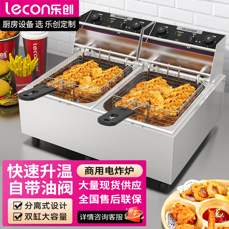 Lechuang penggorengan listrik mesin menara kentang goreng komersial silinder tunggal penggorengan kentang goreng ayam goreng kentang goreng dipertebal penggorengan dua silinder
