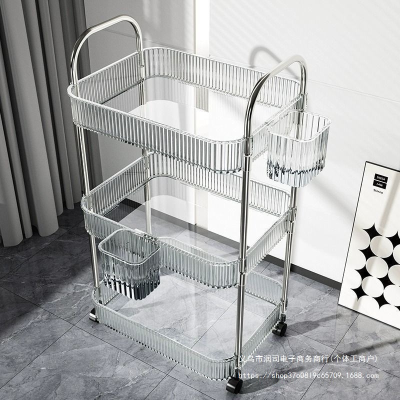 [Penanganan Penjualan] Rak Troli Kecil Transparan Rak Penyimpanan Kosmetik Ponsel Makanan Ringan Kamar Tidur