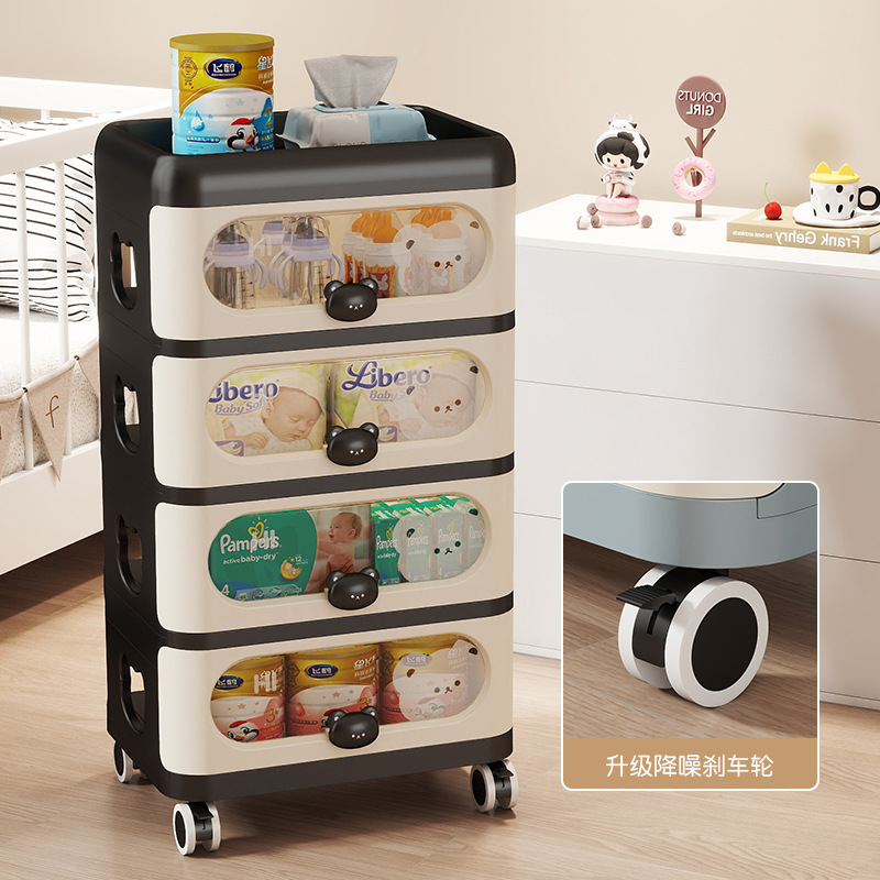 Rak Barang Troli Rak Makanan Ringan Bertingkat Lantai di Dapur Kamar Tidur Rak Penyimpanan Perlengkapan Bayi yang Dapat Digerakkan untuk Rumah Tangga