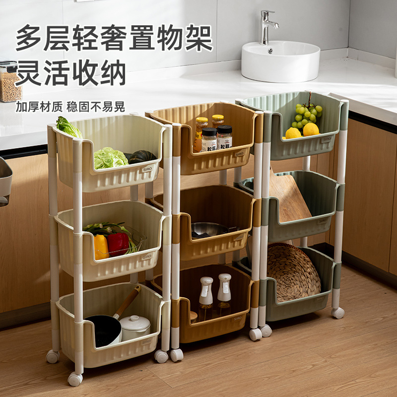 Rak Barang Troli Makanan Ringan Rak Penyimpanan Ruang Tamu Bertingkat Lantai Rak Penyimpanan Ruang Tamu Keranjang Buah dan Sayuran Dapur Bergerak