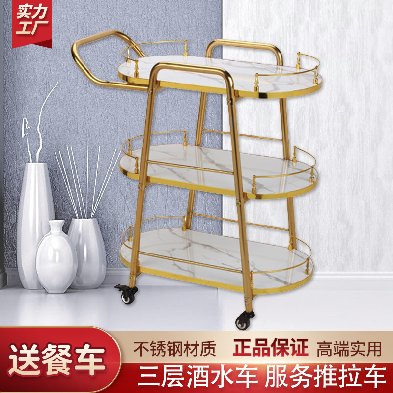 Star hotel mobil anggur titanium baja tahan karat mobil kue KTV layanan seluler mobil layanan Dorong Tangan mobil makan mobil
