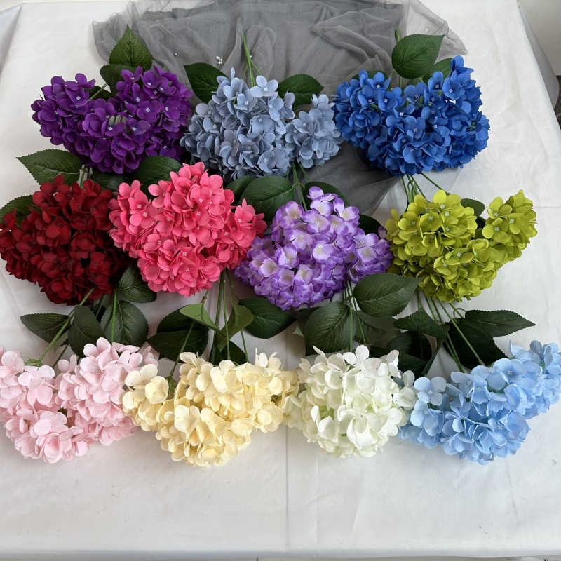 Produsen 5 kepala bunga Hortensia hydrangea dengan daun dalam stok bunga dekorasi pernikahan rumah grosir dalam stok bunga palsu