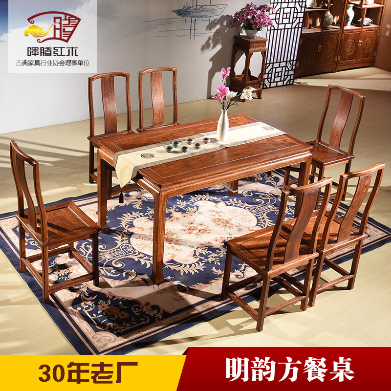 Lihua Mebel Kayu Merah Meja Makan Panjang Meja Makan Kombinasi Kursi Ledgehog Rosewood Hot Wax Meja Makan Kayu Solid Antik Gaya Tiongkok
