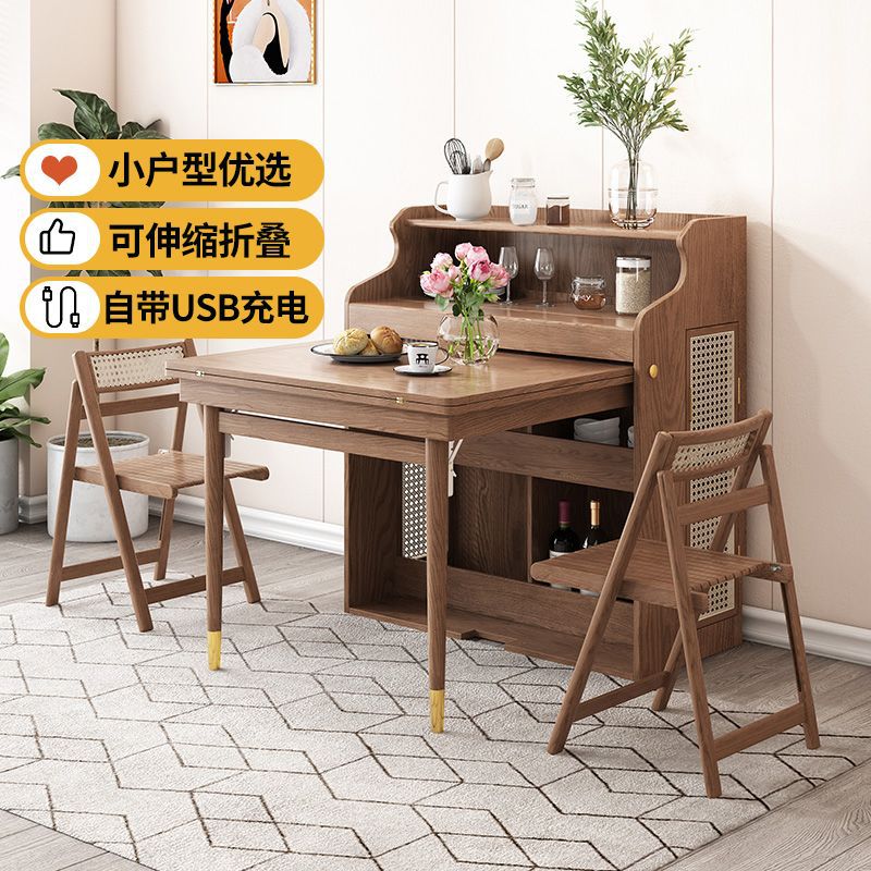 Meja Makan Kayu Solid Eropa Utara Lipat Meja Makan Rumah Tangga Ukuran Kecil Meja Makan Lemari Penyimpanan Tak Terlihat Meja Multifungsi