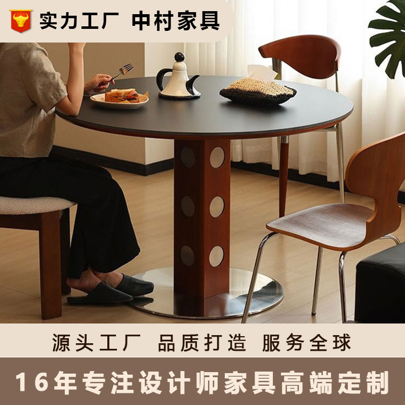 Meja Makan Papan Batu Lantai Dasar Lengkap Set Kecil Rumah Tangga Meja Bundar Reproduksi Gaya Reproduksi Abad Pertengahan Kombinasi Meja dan Kursi