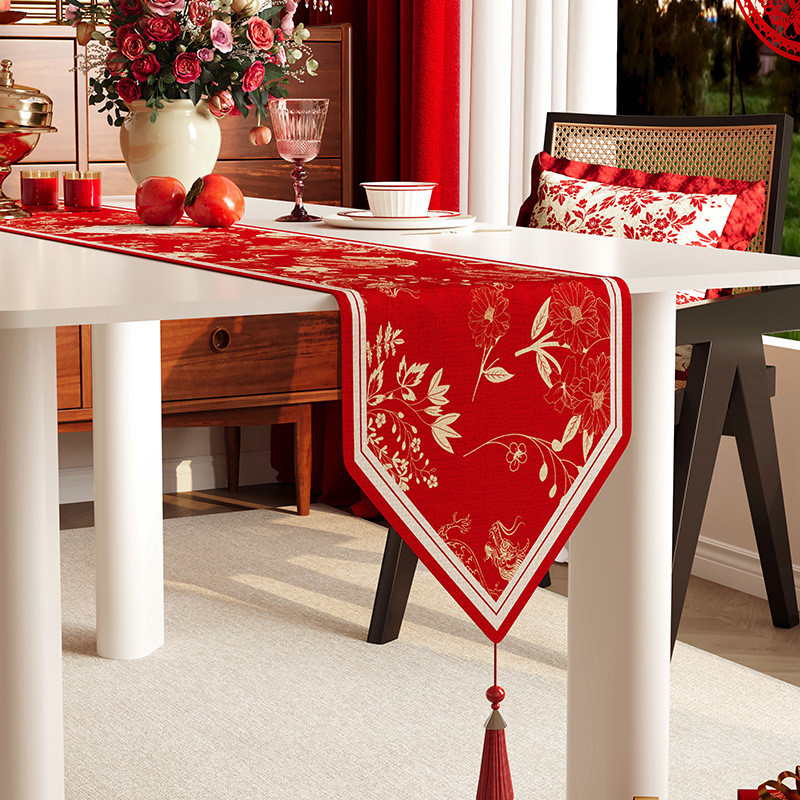 Taplak meja Tahun Baru Amerika taplak meja teh suasana meriah merah taplak meja festival Musim Semi Tahun Baru meja makan dekorasi strip Tengah
