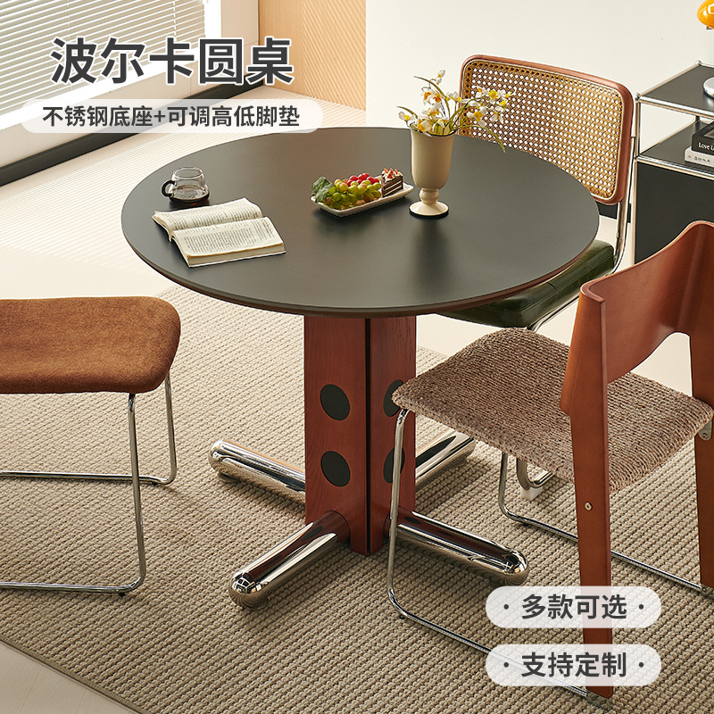 Meja Makan Papan Batu Lantai Dasar Lengkap Set Kecil Rumah Tangga Meja Bundar Reproduksi Gaya Reproduksi Abad Pertengahan Kombinasi Meja dan Kursi