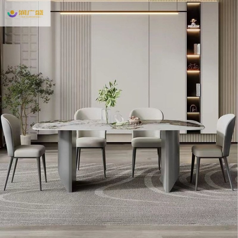 RunGuangsheng Meja Makan Papan Batu Mewah Ringan Gaya Italia Kombinasi Sederhana Modern Rumah Tangga Tipe Besar Meja Makan Panjang Terang Tinggi