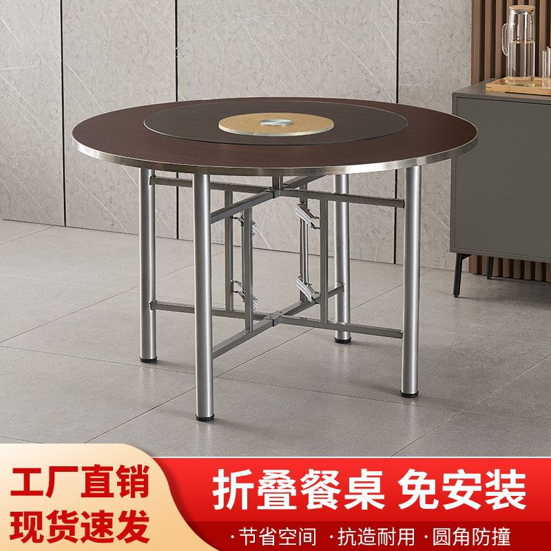 Meja Bundar Baja Tahan Karat 304 Ekstra Tebal Meja Makan Rumah Tangga Meja Lipat Kios Restoran Makan Makan Makan