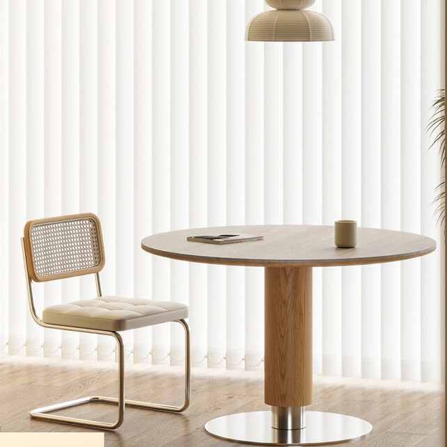 Meja Meja Meja Bundar Kecil Papan Batu Warna Kayu Asli Sederhana Meja Makan Meja Makan Bentuk Rumah Tangga Kecil Kombinasi Meja Makan dan Kursi Bentuk Bundar Kayu Solid