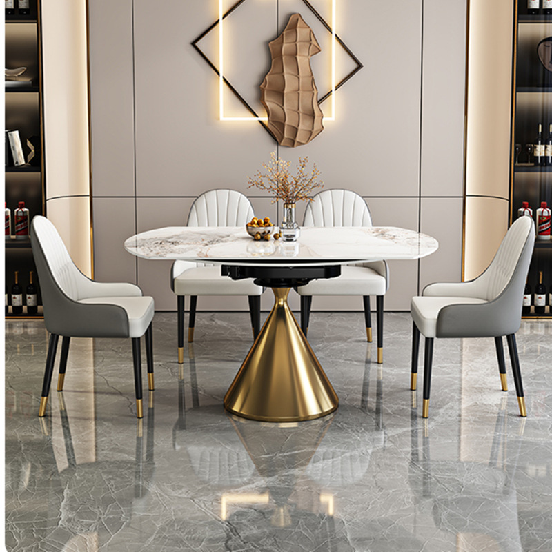 Piring batu meja makan modern sederhana mewah, meja makan persegi dan bulat penggunaan ganda berputar dapat ditarik, Meja bulat meja makan multifungsi rumah tangga