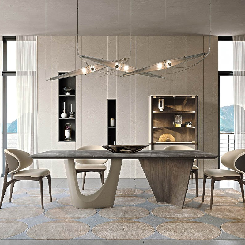 Meja Makan Papan Batu Terang Sederhana dan Terang untuk Pabrik Perabotan Rumah Tangga Model Italia Kombinasi Meja Makan dan Kursi Makan Batu Super Kristal Mewah
