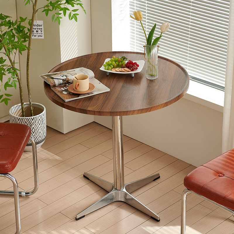 Meja Bundar Kecil Gaya Pertengahan Meja Makan Rumah Tangga Ukuran Kecil Retro Meja Makan Kafe Gaya Krim Meja Negosiasi Balkon Meja Kopi