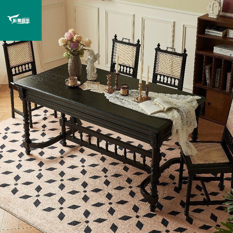 Prancis Retro Kayu Solid Rumah Tangga Bentuk Persegi Panjang Gaya Amerika Ukir Bunga Meja Meja Meja Meja Persegi Warna Hitam Sederhana Modern Mewah Ringan