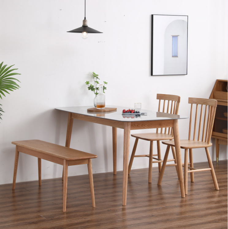 Meja makan kayu Nordic padat mobien, meja makan kayu ek merah rumah Modern Sederhana apartemen kecil meja makan bangku panjang meja log