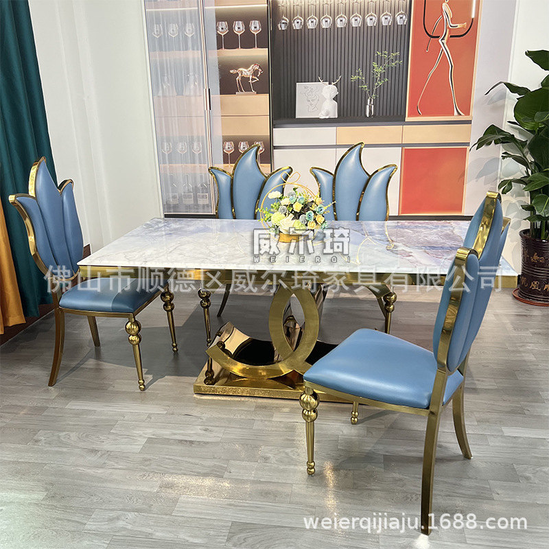 Papan Batu Mewah Ringan Kursi Meja Makan Ruang Tamu Meja Bundar Ruang Makan Rumah Mewah Ringan Kursi Negosiasi Meja Penerimaan Kombinasi Meja Bundar
